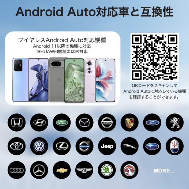 【対応機種】AI BOX Android Auto機能を備えた車、モデル年式:2016以降の車種に対応しています。 USB - Type-C OTG アダプターが含まれているため、より多くのオプションが提供されます。 フォルクスワーゲン / メルセデス / ポルシェ / リンカーン / トヨタ / フォード / ホンダ / ジープ / キア / ラムなど 600 以上の車種に完全に対応し、このアダプターはAndroid 11以降でのみ使用できます。 (HUAWEIスマホには未対応)【自動的に接続&安定性】高速な処理速度、より安定した接続。 最初の接続後は、スマホがポケットやバッグに入っている場合でも、車両を始動するとすぐにデバイスが自動的に スマホに接続されます。