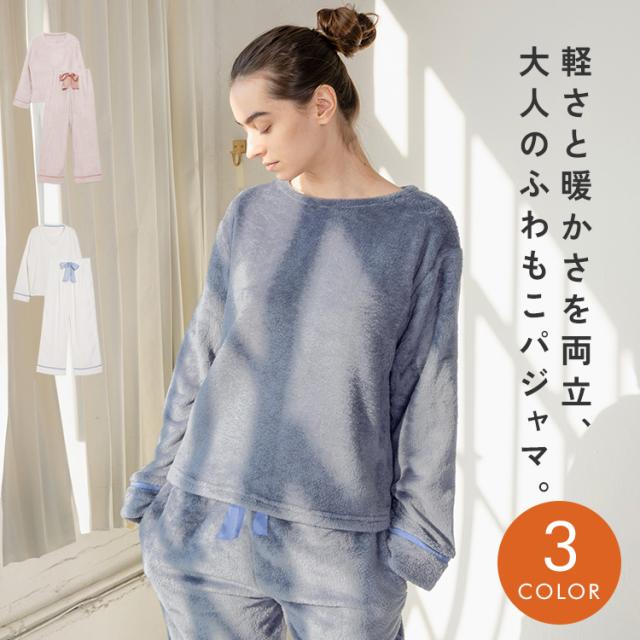 パジャマ レディース ルームウェア 冬 かわいい 暖かい 秋 長袖 上下セット セットアップ 秋冬 もこもこ パンツ あったか ゆったり 部屋着 おしゃれ もこもこルームウェア ロングパンツ SET 冬用 襟なし 上下 リラックス ナイトウェア