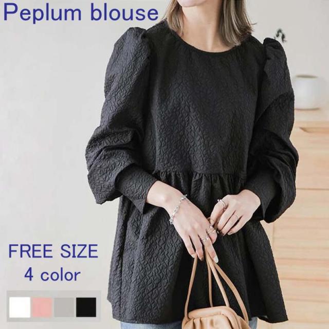 ペプラムトップス ジャカードトップス チュニック ブラウス