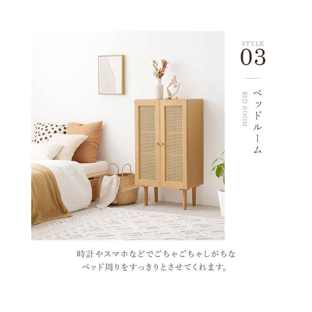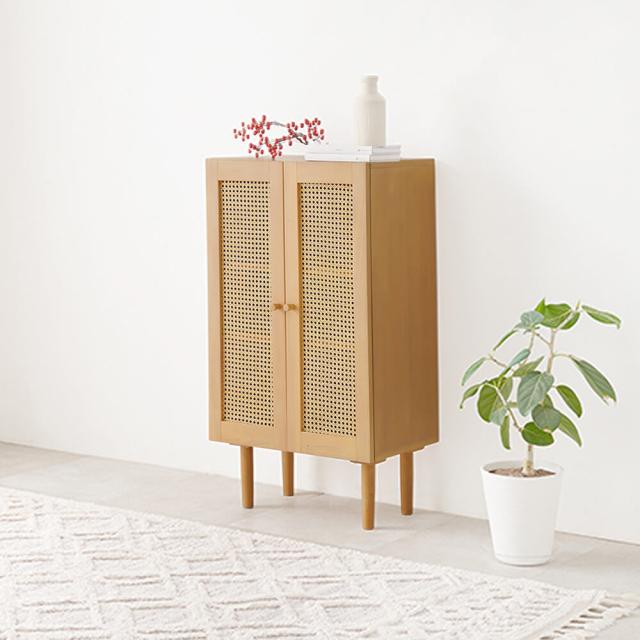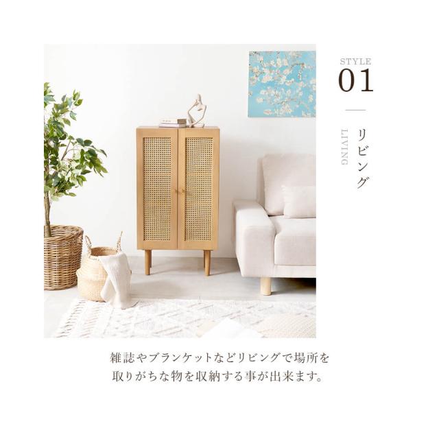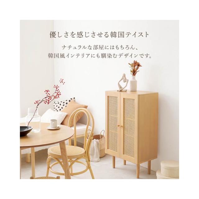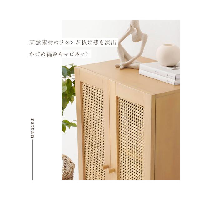 天然ラタンのかごめ編みキャビネット 韓国風 キャビネット 天然素材 藤 ラタン 編み 手作業 整理 収納力 木目調 通気性