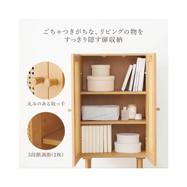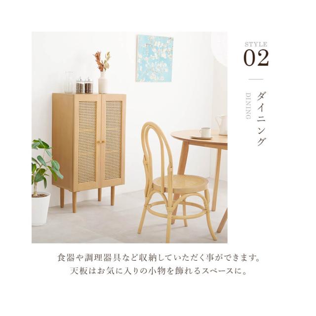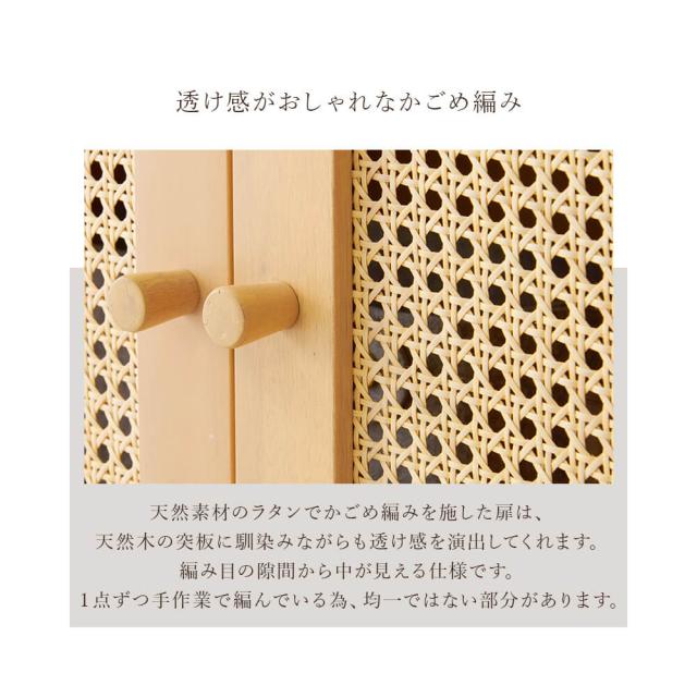 扉には天然素材の籐を使用し、カゴメ編みの透け感がありながらも、目隠し効果を持たせます。