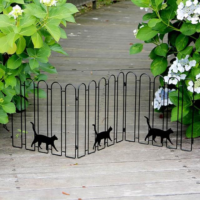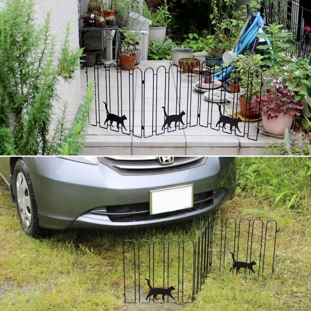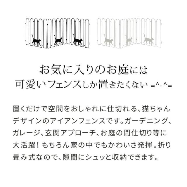 折り畳めるアイアンフェンス 2枚組 アイアンフェンス ガーデニングフェンス ガーデンフェンス キャット ネコ 猫 黒猫