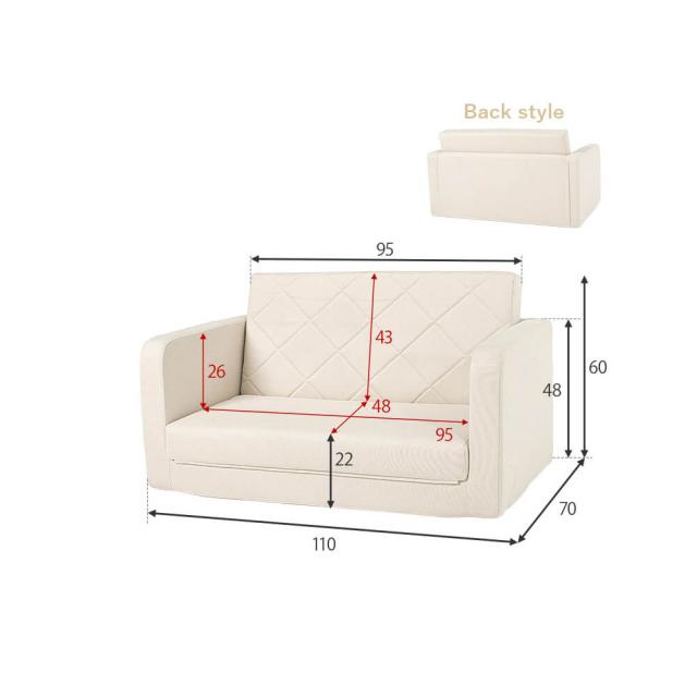 幅 110cm × 奥行 70 / 180cm × 高さ 60 / 48cm × 座面高 22/11cm素材