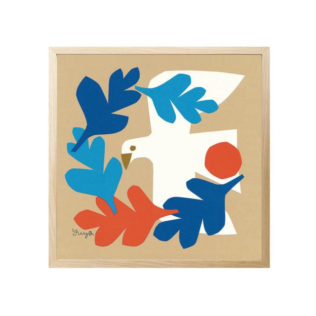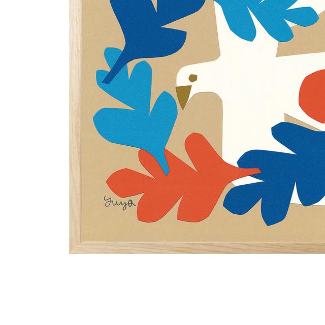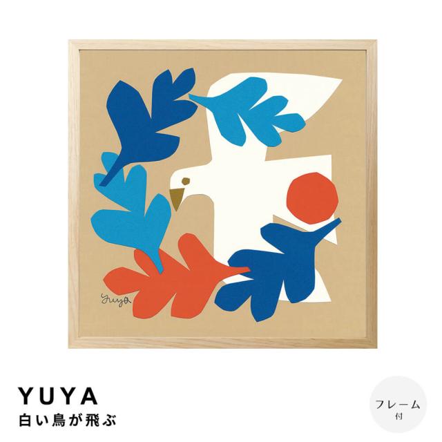 YUYA(ユウタ) 白い鳥が飛ぶ アートポスター(フレーム付き)