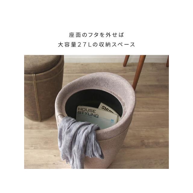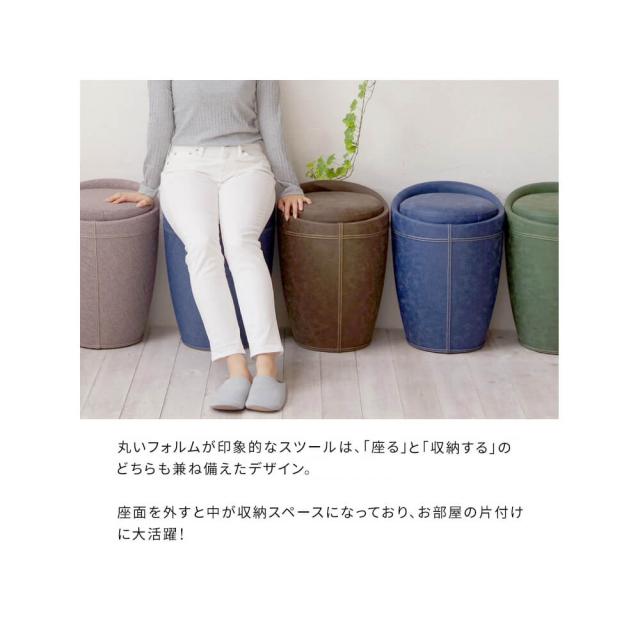 収納付き 椅子 ラウンドスツール 丸スツール 軽量 完成品 リビング 玄関椅子 グレー ダークグレー ブルー