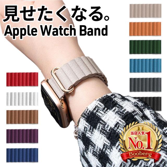 キレイ目なレザー調バンド。マグネットだから装着簡単。 Applewatch シリーズ ニュアンスカラー おしゃれ シンプル 軽い 送料無料 series 2 3 4 5 6 7 8
