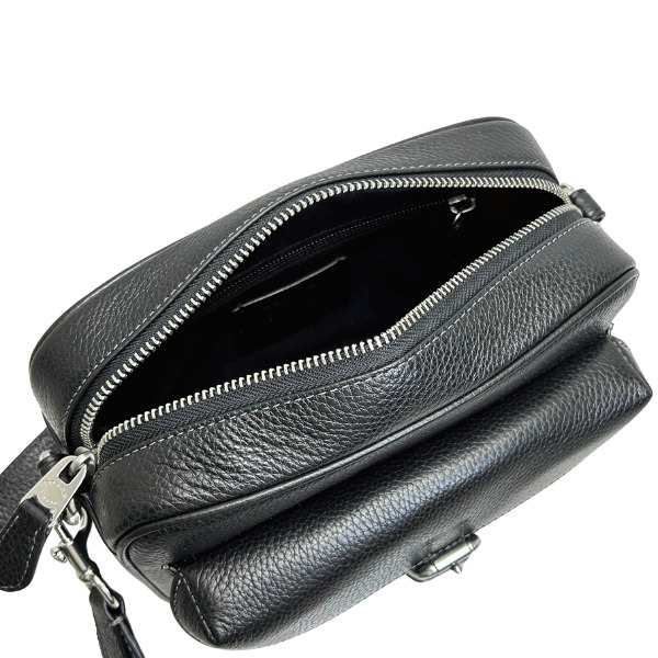 コーチならではの上質なレザー素材に正面のフラップポケットがアクセントのショルダーバッグです。
