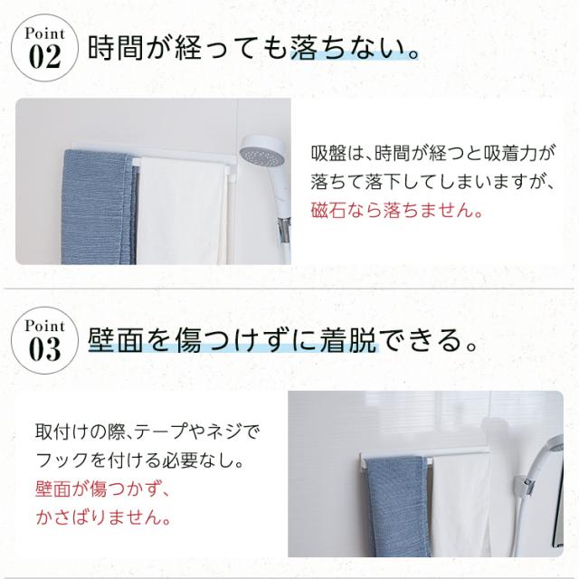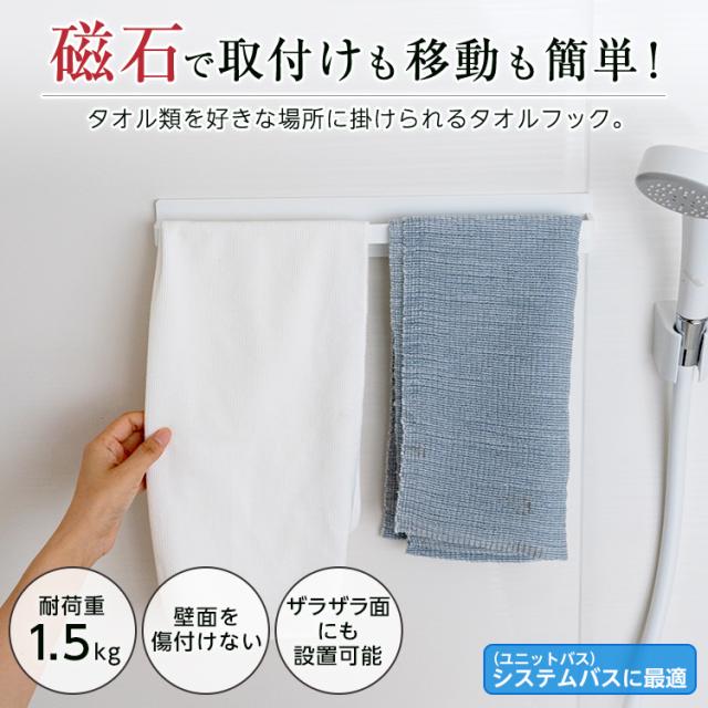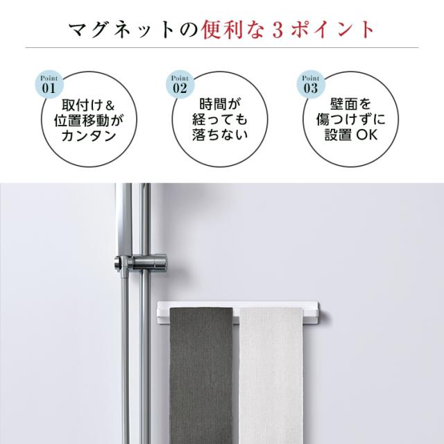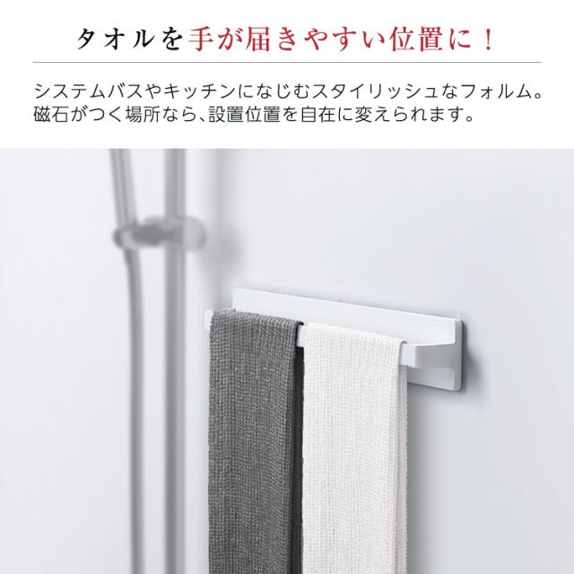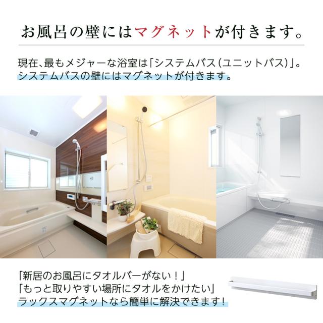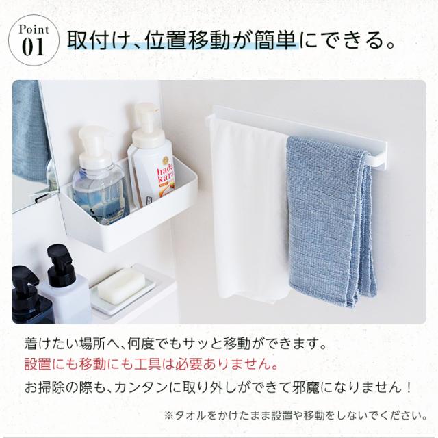 お風呂 収納 浮かせる収納 タオルバー タオル掛け おしゃれ マグネット アスベル ラックス バス収納 ホワイト