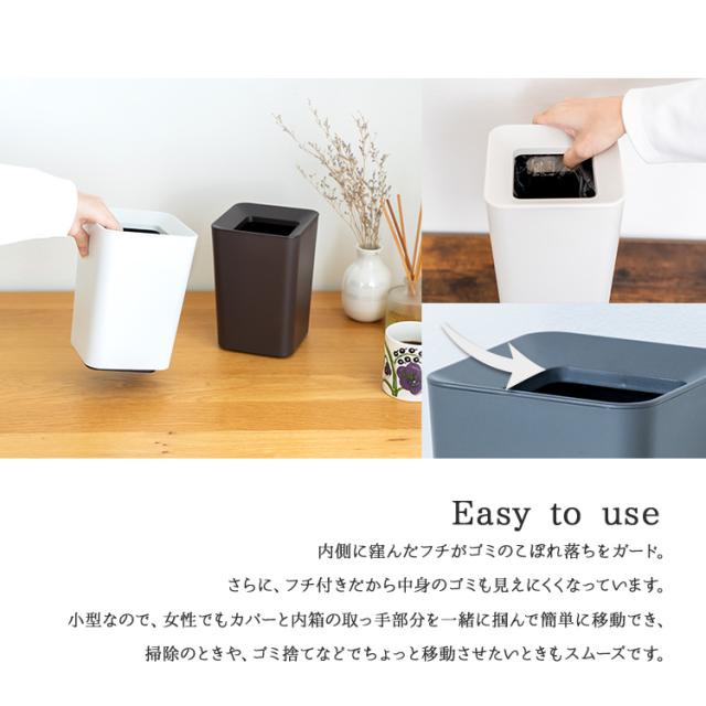 袋が見えないゴミ箱でスタイリッシュな空間を演出。スタイリングと実用性を兼ね備えた2重構造のくず入れ「ルクレールCV」 。洗面所やドレッサー周り、卓上での使用に最適な2リットル ミニサイズ。すぐに手が届く場所や足元に置いても邪魔にならない小型で、すっきりとした角型デザイン。カバーを被せるだけで、生活感の漂う袋を隠せます。様々なインテリアと調和するホワイトとブラウン、グレーのラインナップ。「2個セットの販売ページです」容量 : 2.0リットル サイズ : 幅14.2×奥行14.2×高さ20.6cm材質 : カバー=ポリプロピレン/ポリスチレン 本体=ポリプロピレン日本製