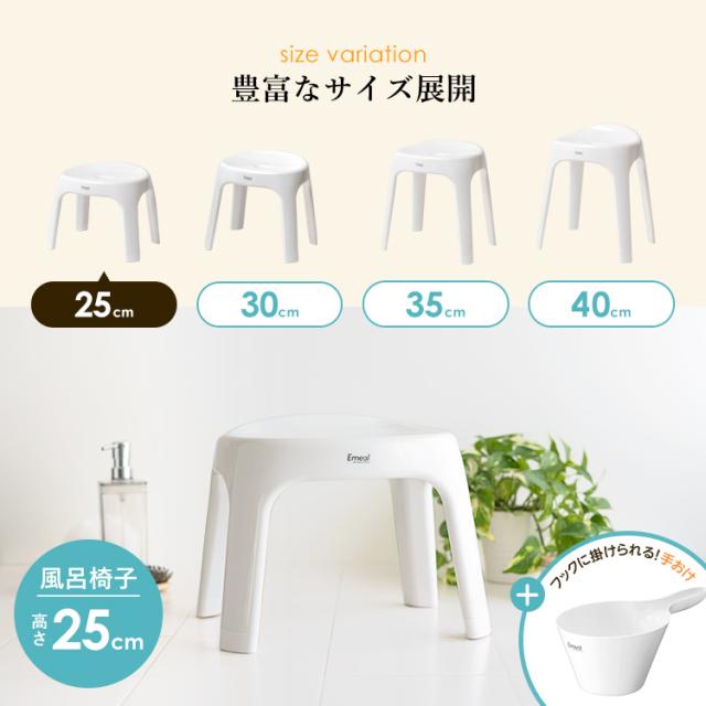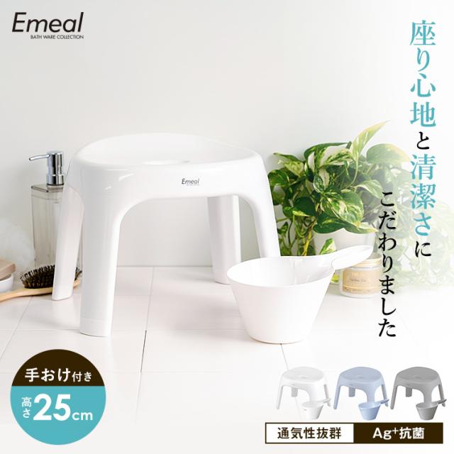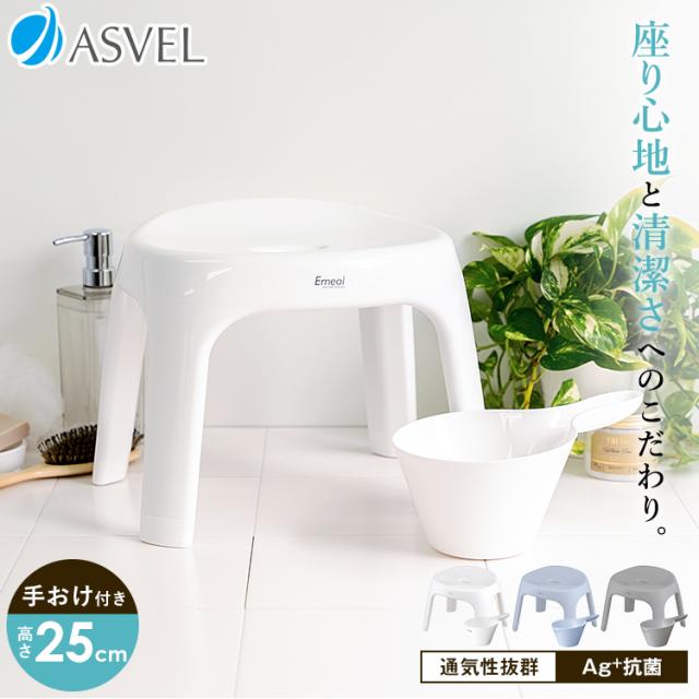 風呂椅子 おしゃれ エミール S 25cm 手桶 セット アスベル ASVEL EMEAL バスチェア 風呂いす お風呂 イス 椅子 抗菌 高め 洗いやすい S25 カビにくい