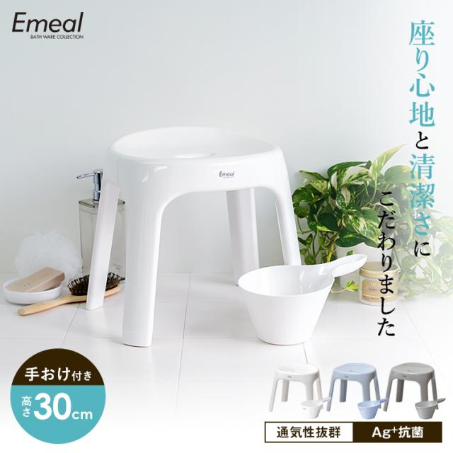 風呂椅子 おしゃれ エミール S 30cm 手桶 セット アスベル ASVEL EMEAL バスチェア 風呂いす お風呂 イス 椅子 抗菌 高め 洗いやすい S30 カビにくい