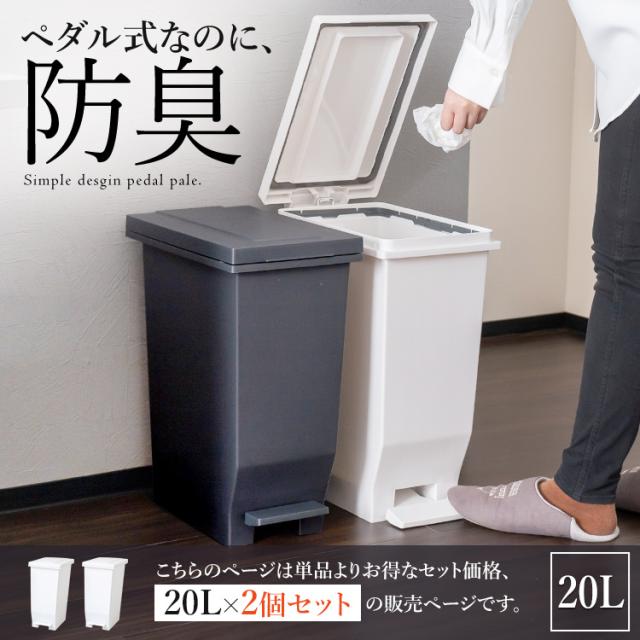 手を使わず、足で開閉できるペダルペール。臭いもれを防ぐパッキン付きで生ごみを捨てても安心です。ホワイト・ブラックを組み合わせれば、分別にも最適。ゴミ袋をセットできる袋止め付き。キッチンにぴったりのスリムサイズ(20リットル )のお得な2個セットです。容量 : 20リットル サイズ : 幅22.5×奥行36.7×高さ46.5cm材質 : フタ・本体・袋止め・ペダル=ポリプロピレン ペダルロッド=スチール(クロームメッキ) パッキン=ポリエチレン日本製