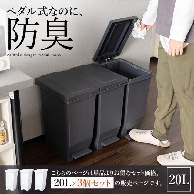 手を使わず、足で開閉できるペダルペール。臭いもれを防ぐパッキン付きで生ごみを捨てても安心です。ゴミ袋をセットできる袋止め付き。キッチンにぴったりのスリムサイズ(20リットル )のお得な3個セットです。容量 : 20リットル サイズ : 幅22.5×奥行36.7×高さ46.5cm材質 : フタ・本体・袋止め・ペダル=ポリプロピレン ペダルロッド=スチール(クロームメッキ) パッキン=ポリエチレン日本製