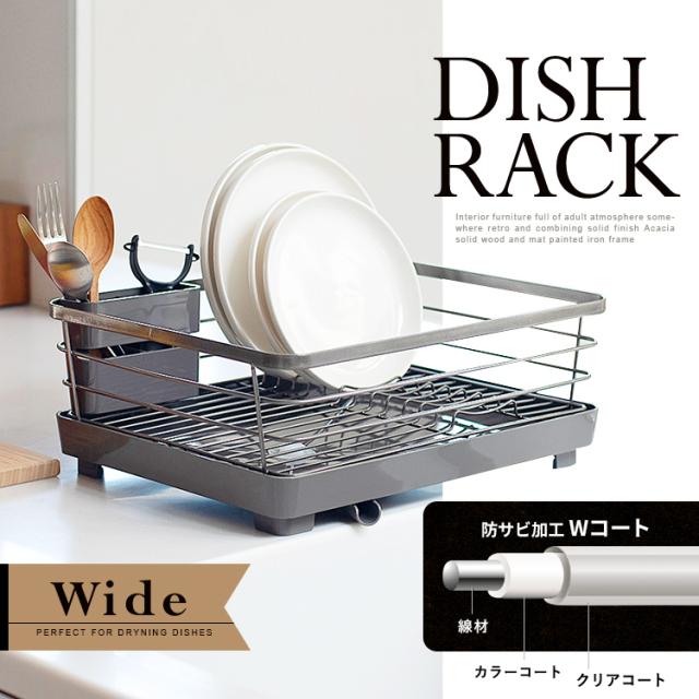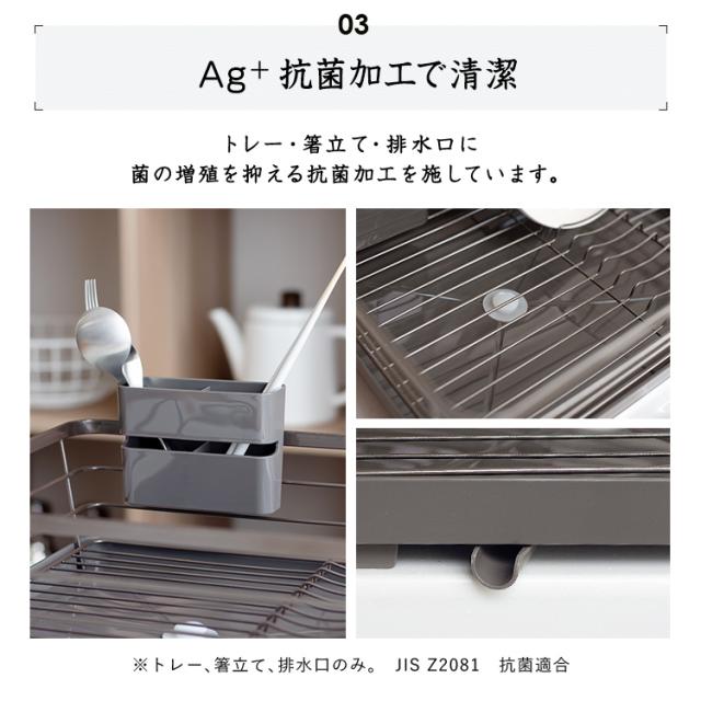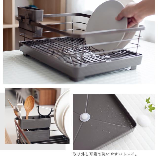 材質 : カゴ本体=鉄(クロームメッキ・樹脂コーティング) トレー・排水口・箸立て=ポリプロピレン 止水栓=シリコーンゴム ゴム脚=塩化ビニル樹脂