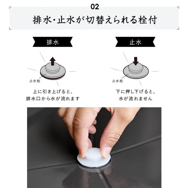 材質 : 本体=鉄(樹脂コーティング)、トレー・箸立て・排水口=ポリプロピレン、止水栓=シリコーンゴム、ゴム脚=塩化ビニル樹脂