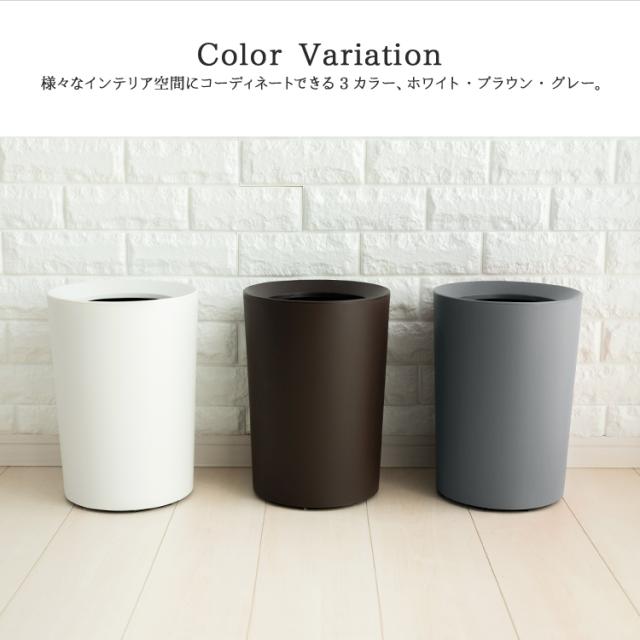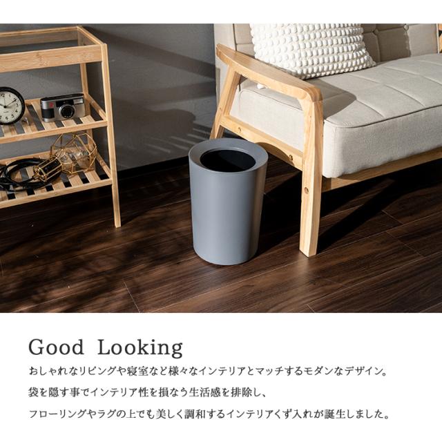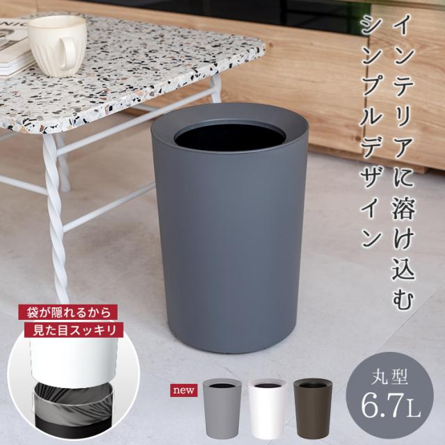 袋が見えないゴミ箱でスタイリッシュな空間を演出。スタイリングと実用性を兼ね備えた2重構造のくず入れ「ルクレールCV」。すぐに手が届く場所や足元に置いても邪魔にならない小型ですっきり丸型デザイン。カバーを被せるだけで、生活感の漂う袋を隠せるから、スタイリッシュなリビングを演出します。様々なインテリアと調和するホワイトとブラウン、グレーのラインナップ。容量 : 6.7リットル サイズ : 直径22.2×高さ31.8cm材質 : カバー=ポリプロピレン/ポリスチレン 本体=ポリプロピレン日本製