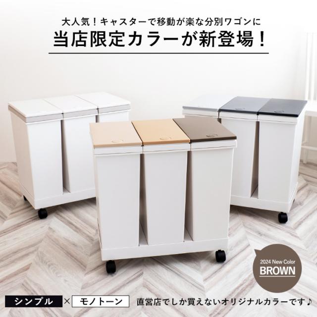 ゴミ箱 おしゃれ キッチン 分別 【限定カラー】 横型 ワゴン 60リットル プッシュ アスベル 3分別 スリム キャスター 60L 蓋付き 資源ゴミ ごみ箱