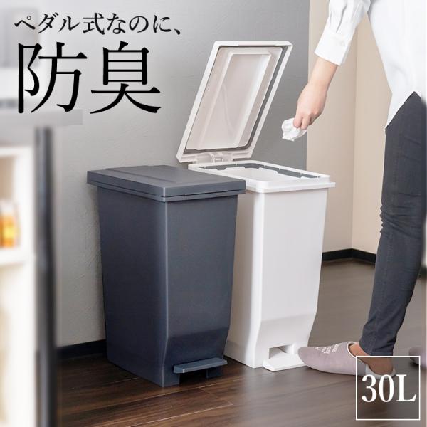手を使わず、足で開閉できるペダルペール。臭いもれを防ぐパッキン付きで生ごみを捨てても安心です。ホワイト・ブラックを組み合わせれば、分別にも最適。ゴミ袋をセットできる袋止め付き。キッチンにぴったりのスリムサイズ(30リットル )です。※こちらは【単品販売】ページです。容量 : 30リットル サイズ : 幅25.2×奥行41.0×高さ52.4cm材質 : フタ・本体・袋止め・ペダル=ポリプロピレン ペダルロッド=スチール(クロームメッキ) パッキン=ポリエチレン日本製