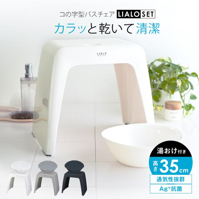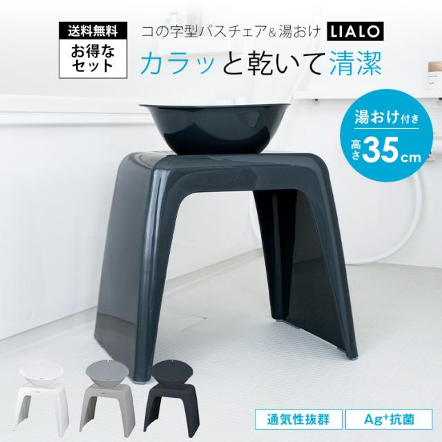 風呂椅子 おしゃれ リアロ 35cm 湯桶 セット アスベル ASVEL LIALO バスチェア 風呂いす お風呂 イス 椅子 コの字 抗菌 高め 洗いやすい カビにくい