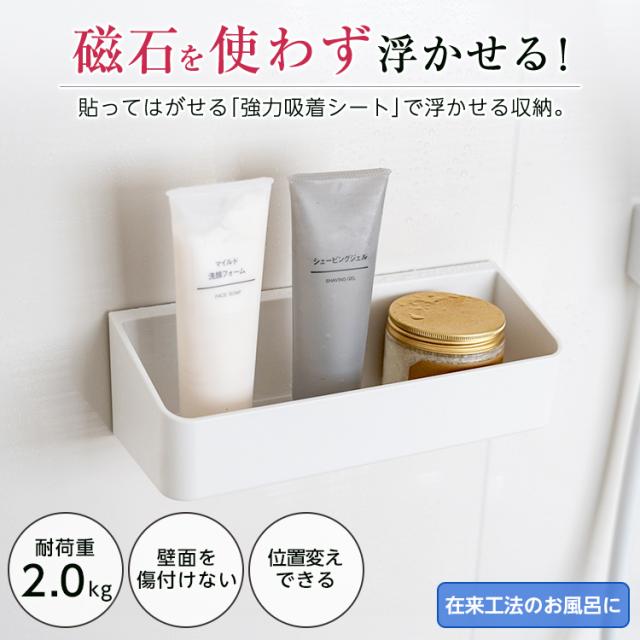 お風呂 収納 浮かせる収納 ボトルラック ウォールラック おしゃれ 吸着シート アスベル ラックス バス収納 ホワイト