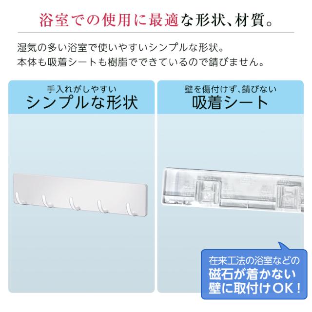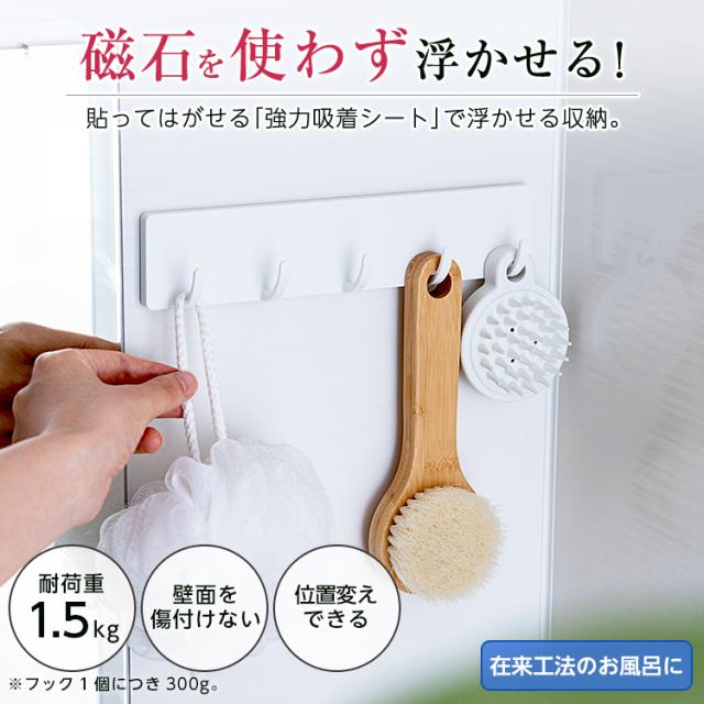お風呂 収納 浮かせる収納 ツールフック 5連フック おしゃれ 吸着シート アスベル ラックス バス収納 ホワイト