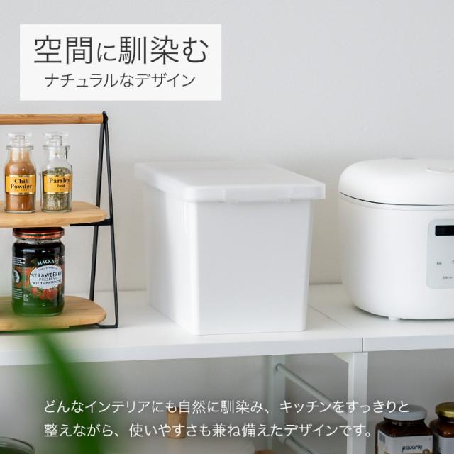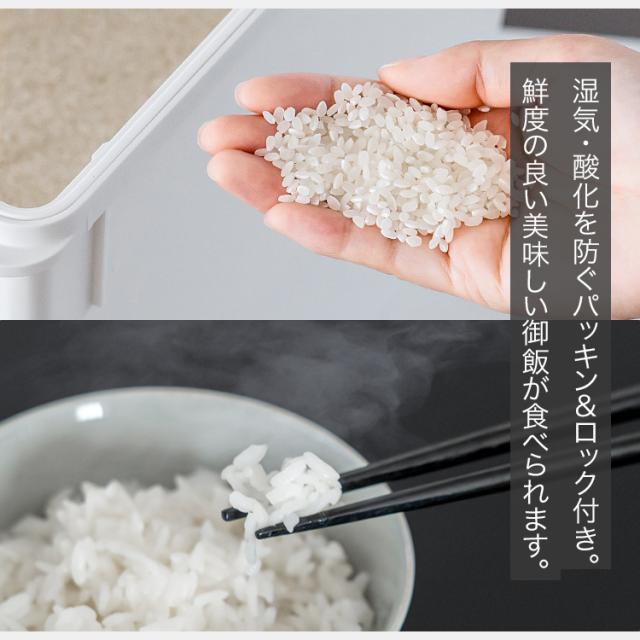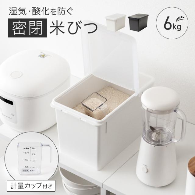 お米の保存に便利な密閉米びつ。パッキン付きで完全密閉だから、お米の酸化を防ぎ、美味しさを保ちながら保存できます。計量に便利な計量カップ付き。無洗米にも対応しています。容量 : 米 6kgサイズ : 幅18.8×奥行29.6×高さ19.3cm材質 : 本体・フタ・止め具=ポリプロピレン 計量カップ=AS樹脂 パッキン=シリコンゴム
