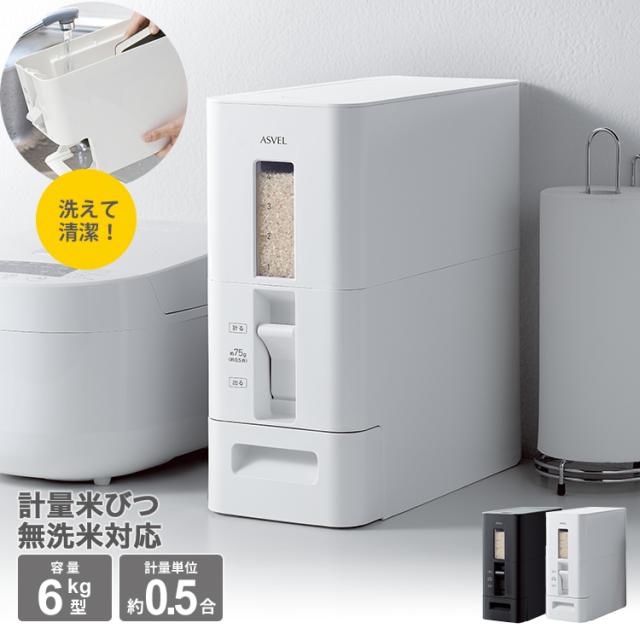 米びつ 計量 S 6kg アスベル ASVEL 0.5合計量 5kg スリム おしゃれ キッチン用品 キッチン収納 ライスストッカー ライスボックス 無洗米 ギフト