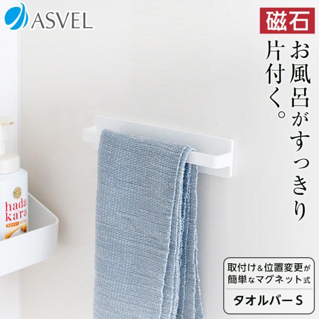 お風呂 収納 浮かせる収納 タオルバー タオル掛け おしゃれ マグネット アスベル ラックス バス収納 ホワイト