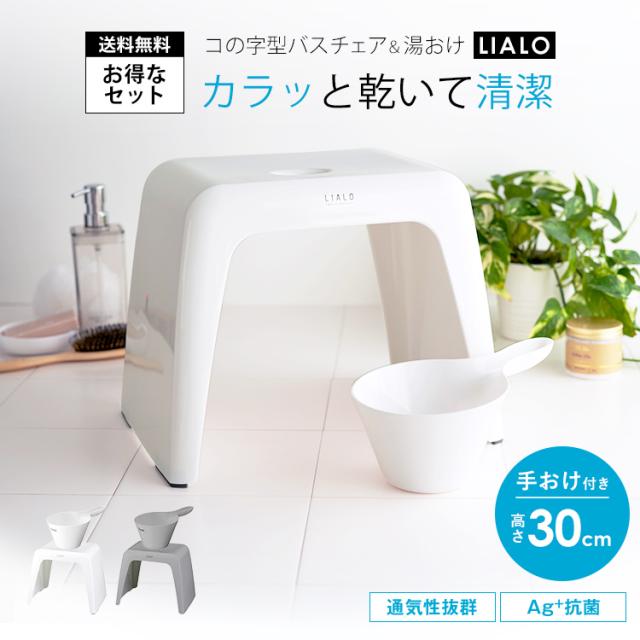 風呂椅子 おしゃれ リアロ 30cm 手桶 セット アスベル ASVEL LIALO バスチェア 風呂いす お風呂 イス 椅子 コの字 抗菌 高め 洗いやすい カビにくい