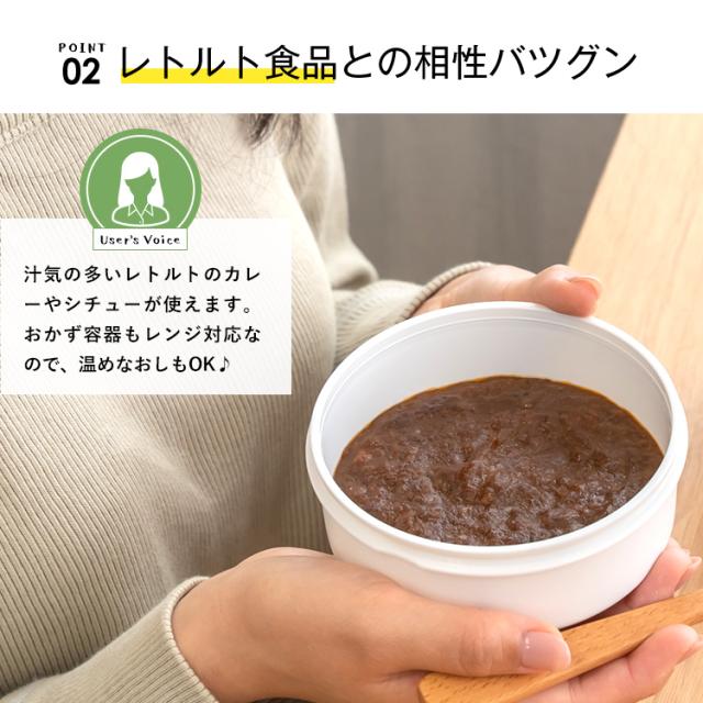 いつでもどこでも温かご飯が美味しく食べられるカフェ丼ランチ。ステンレス真空断熱構造で、保温・保冷で、中身の温度を保ちます。丼タイプなので、カレーや親子丼、パスタなど、お弁当のバリエーションが広がります。保冷もできるから、暑い夏にも冷製メニューにも。丼ぶり形状で、お子様でも食べやすく、おかずも詰めやすいので、お母さんも大助かり。食洗器にも対応、忙しい家事の短縮にも。レンジで、温め直しもできます。たっぷり食べられる大盛りサイズ800mlで、育ち盛りのお子さんに最適です。