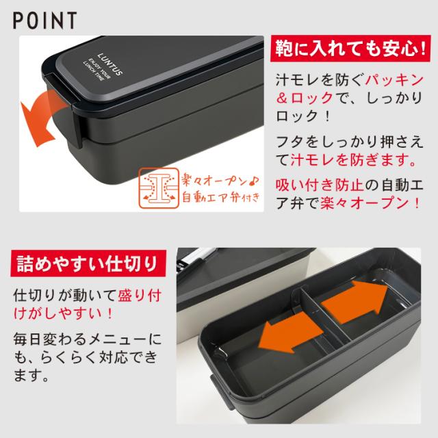 弁当箱 ランタス FC-T800 バッグ 付き アスベル ASVEL LUNTUS 2段 男子 男性 レンジ対応 食洗器対応 汁モレ防止 お弁当箱 ランチボックス ギフト