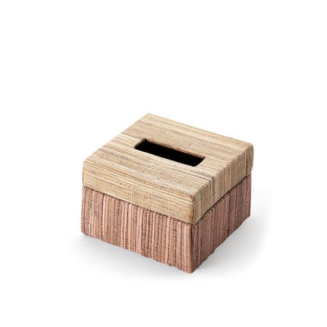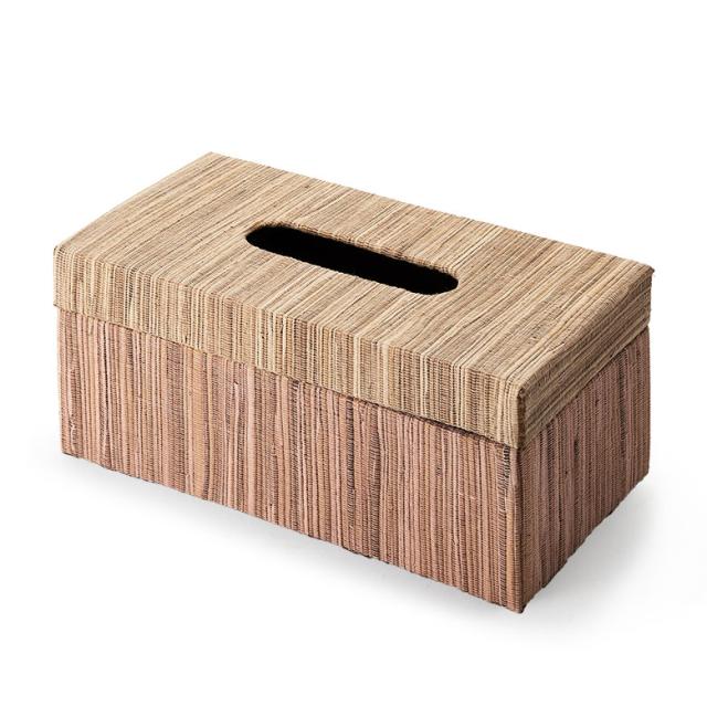空間に温もりをプラスするピンク×ナチュラルと、爽やかな印象のブルー×ナチュラルのバイカラーがおしゃれな2色展開。幅27×奥行13.5×高さ8cmのレギュラーサイズは、ベーシックなボックスティッシュにぴったりなサイズ感。標準的な箱ティッシュはもちろん、フィルム包装のティッシュも収納可能。ナチュラルでありながら、バリのヴィラやリゾートホテルのような上質なリゾート感を演出するアジアン雑貨です。