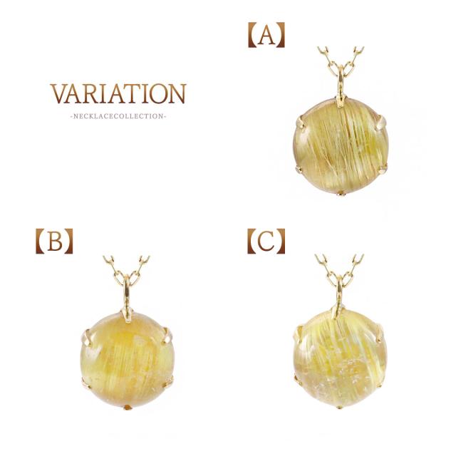 ・ルチルクォーツ ラウンドカボションカット ・地金:K18YG(18金イエローゴールド) ※刻印箇所等は画像と異なる場合がございます。 ※針状の結晶(ルチル)の内包量は石により異なります。 タイプ【A】【B】【C】よりご選択ください。 |