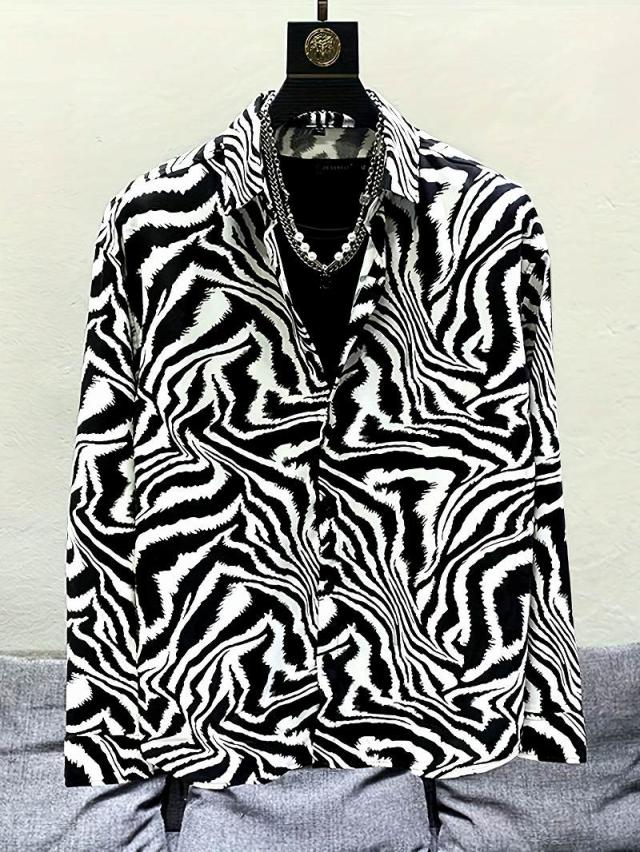 白黒 ゼブラ柄 長袖シャツ ドレスシャツ Yシャツ 227 柄シャツ スーツ ホスト ヤクザ ヤンキー オラオラ系 悪羅悪羅 服 メンズ ファッション