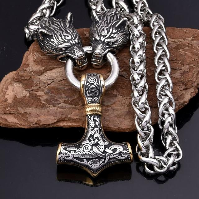ウルフヘッド ハンマーモチーフ コンビカラー ネックレス 095 カジュアル ホスト ヤクザ ヤンキー オラオラ系 悪羅悪羅 チンピラ 派手 メンズ アクセサリー ファッション