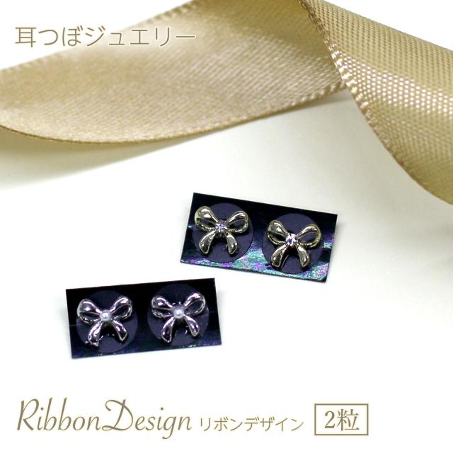 耳つぼジュエリー 上品リボンデザインストーン プチ2粒 リボン ガーリー 可愛い クリスタル 選べるカラー デザインストーン チタン粒 金粒 耳つぼシール 耳ツボジュエリー 耳ツボシール 耳つぼダイエットシール お試し 耳つぼピアス マッサージ おしゃれ