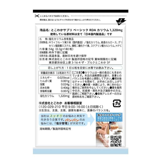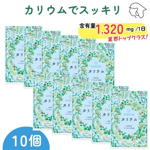 10個セット すべての原料が国内製造 安心のカリウム1,320mg キウイパウダー配合 【1日6粒/180粒入】 塩化カリウム とこわかサプリ ベーシックRDA1320