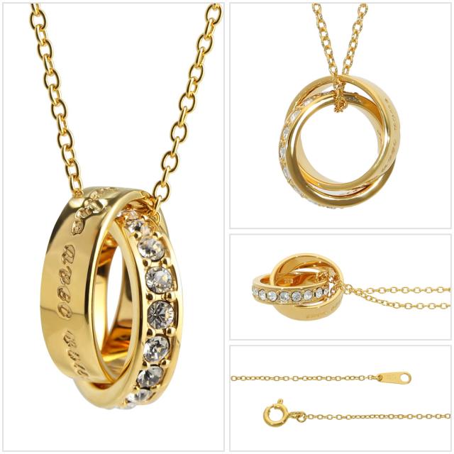 close to me スワロフスキー ダブル リング K23 ロイヤルゴールドプレーティング ペアネックレス ペアペンダント ペアアクセサリー おそろい お揃い
