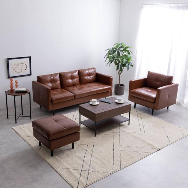 このソファは、高級感あふれるPVC素材を使用しており、見た目にも触り心地にもリアルなレザーの質感を再現。