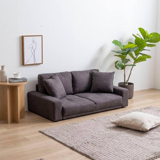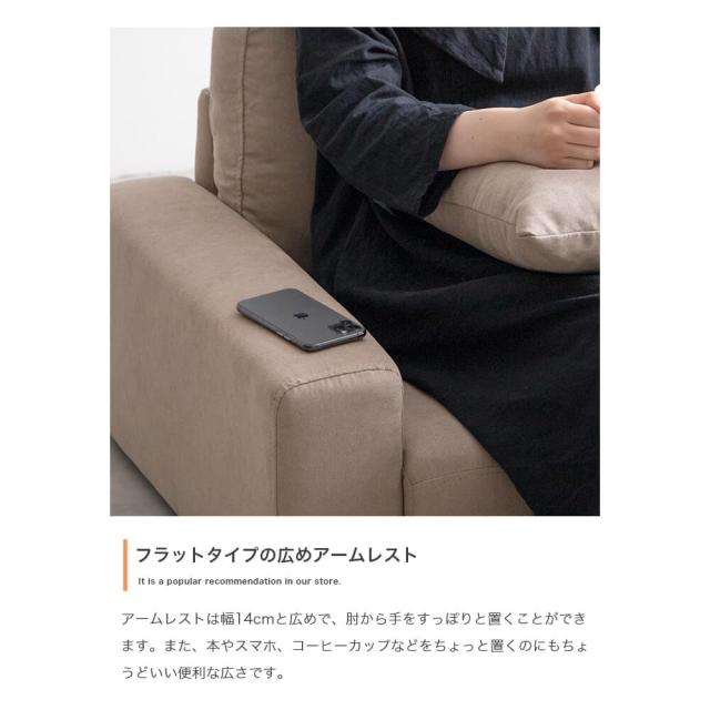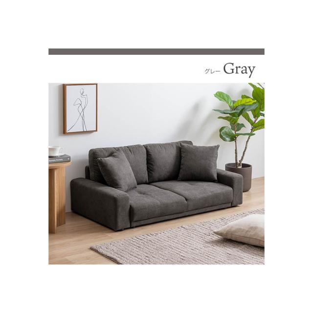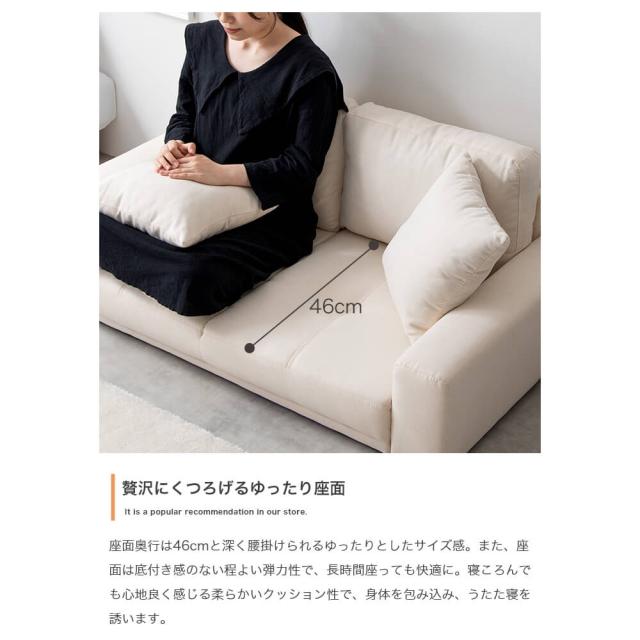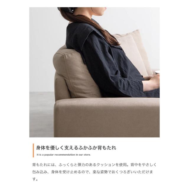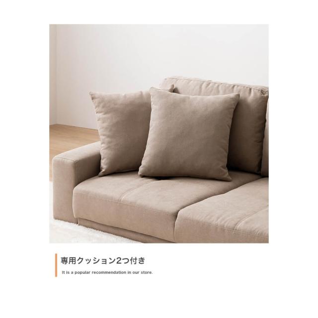 また、ソファ本体と同じ生地を使用した専用のふかふかのクッションが2つ付属しております。