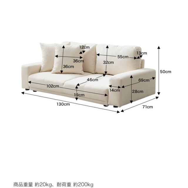 本体サイズ: 幅 130cm × 奥行 71cm × 高さ 50cm (座面高: 19cm)商品重量: 20kg