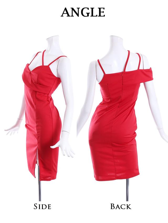 ☆ワンカラーでシンプルながらセクシーなタイトドレス、オフショルダーで女性らしさを引き立てます。