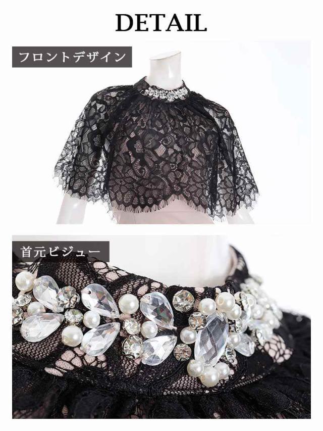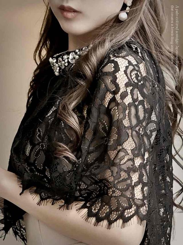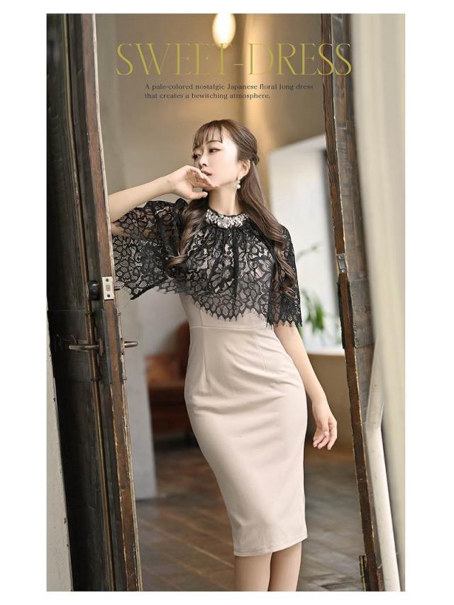 ☆上品なパールビジューが施されたミモレ丈キャバドレス、華やかでエレガントな印象。
