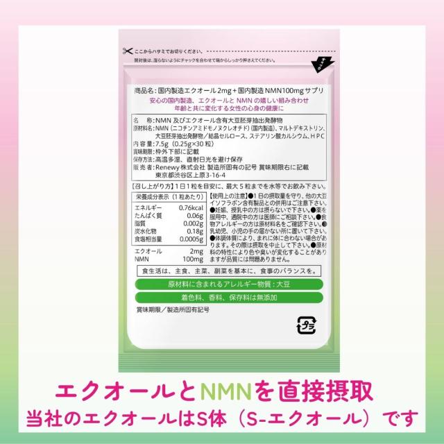 <30粒入>エクオール・NMNは共に安心の国内製造
