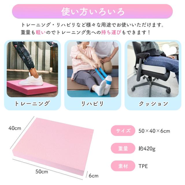 バランスパッド バランスマット トレーニング リハビリ ヨガ 筋トレ ヨガマット マット クッション ピラティス ジム 体幹トレーニング 補助 ダイエット バランス 運動 バランスディスク プランク 腹筋 ブロック 体幹 筋肉 エクササイズ 極厚 転落防止 滑り止め 50×40×6cm