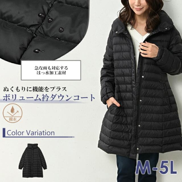 送料無料※沖縄/北海道対象外 大きいサイズ レディース ダウンコート 長袖 ジップアップ ボリュームカラー 撥水加工 薄手 軽量 アウター M/LL/3L/4L/5L ゆったりサイズ ぽっちゃり女子 プラスサイズ