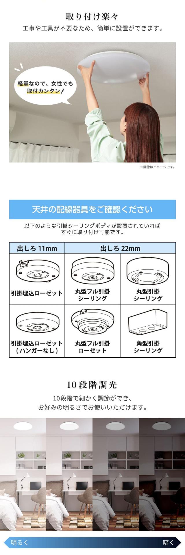 10段階で細かく調節ができ、お好みの明るさでお使いいただけます。