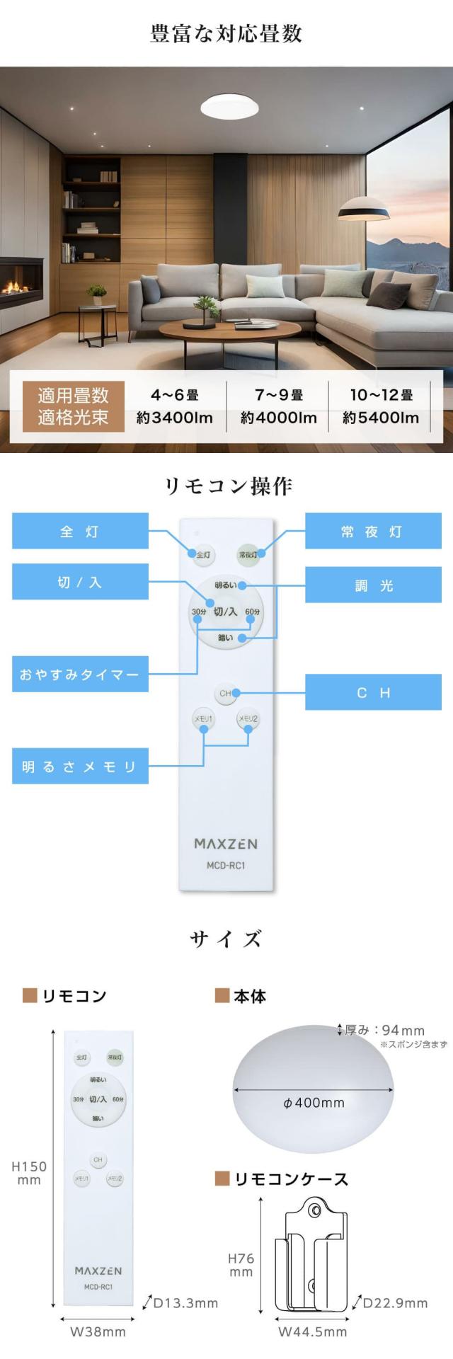 【2個セット】MCD06LT02 MAXZEN [洋風LEDシーリングライト (〜6畳/調光) リモコン付き]