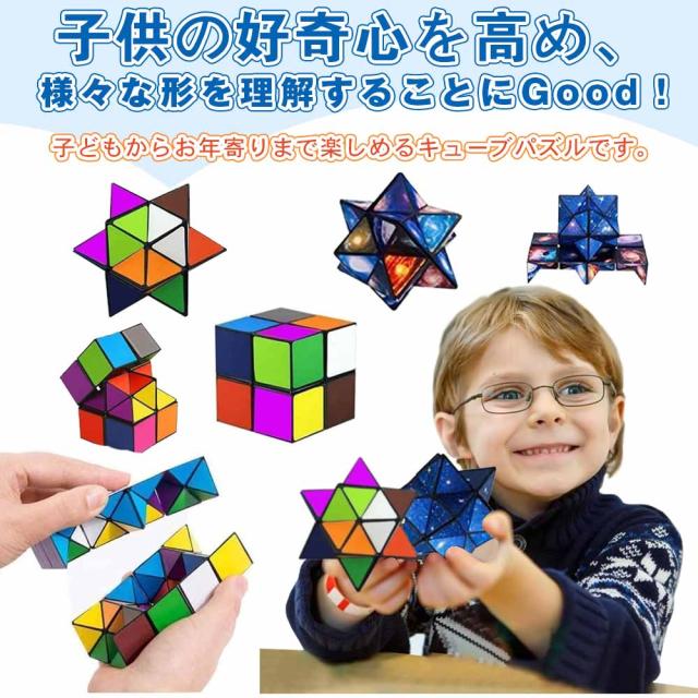 ●マジックスターキューブを簡単に立方体の2つの層を展開して新しい形状を作成したり、それらを分離して2つの異なる立方体で組み立てや変形ができる不思議なキューブです。