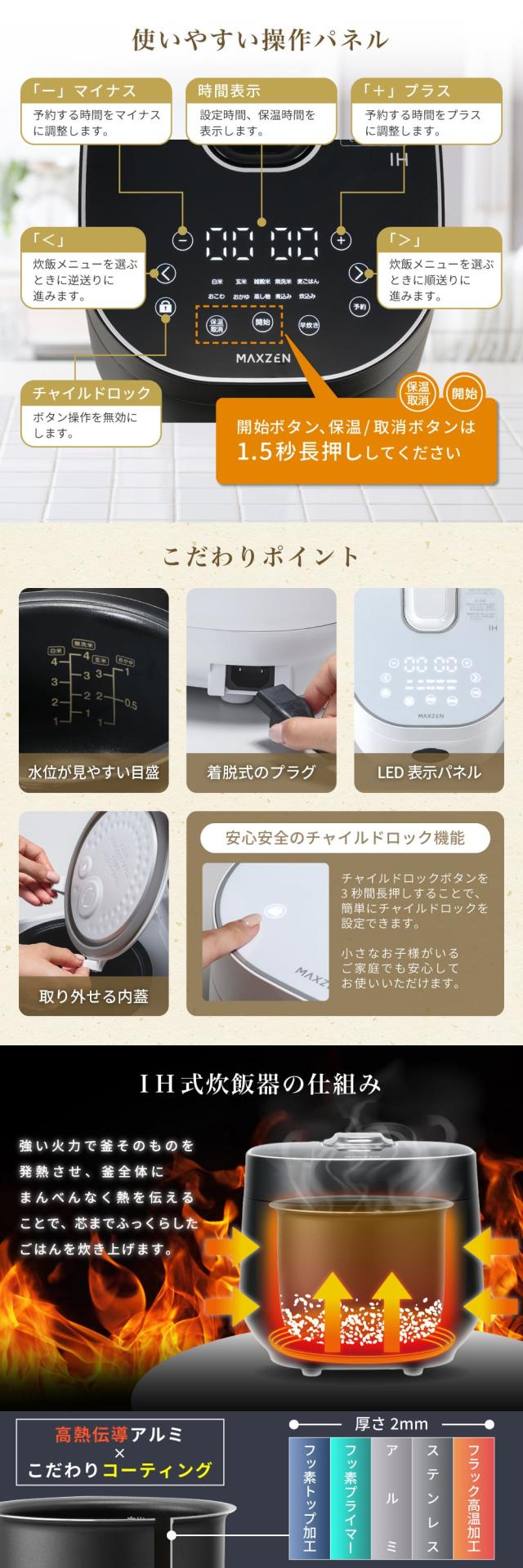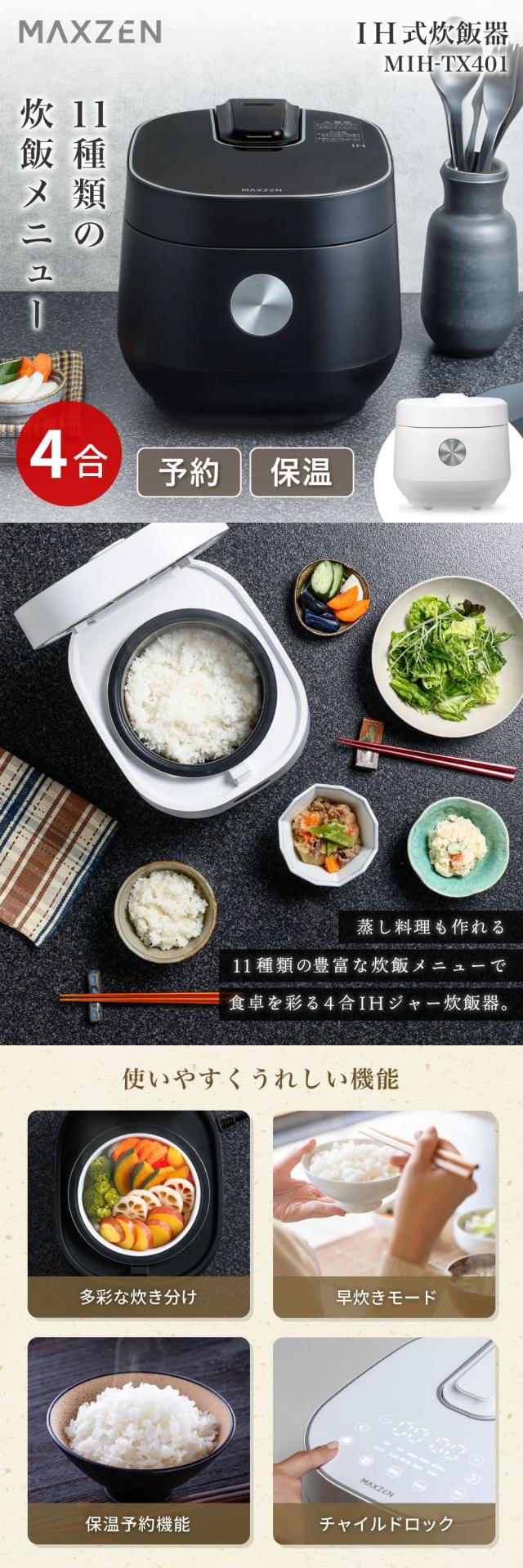 炊飯器 4合 4.0合 二人暮らし IH IH炊飯器 家族 ファミリー 早炊き 保温 予約 玄米 四合炊き シンプル キッチン家電 炊飯ジャー ブラック MIH-TX401-BK マクスゼン